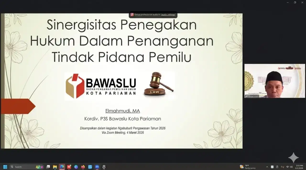 Padang – Badan Pengawas Pemilu (Bawaslu) Kota Pariaman dan Kabupaten Sijunjung berkolaborasi meningkatkan kapasitas penegakan hukum pemilu melalui kegiatan "Ngabuburit Pengawasan". Kegiatan daring ini, yang melibatkan pimpinan Bawaslu Sumatera Barat serta jajaran Bawaslu Kabupaten/Kota se-Sumbar, menyoroti pentingnya sinergi antar lembaga dalam Sentra Gakkumdu.