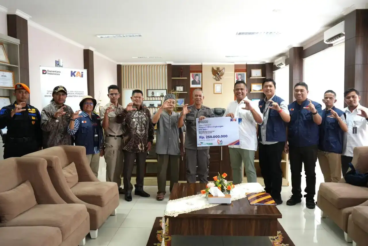 Padang – PT Kereta Api Indonesia (KAI) Divre II Sumatera Barat menyalurkan bantuan Rp250 juta untuk pembangunan Masjid Al Mursydin di Cubadak Timur, Pasaman, Kamis (26/2). Bantuan ini menjadi bagian dari program Tanggung Jawab Sosial dan Lingkungan (TJSL) KAI, sebagai wujud kepedulian perusahaan terhadap masyarakat sekitar.