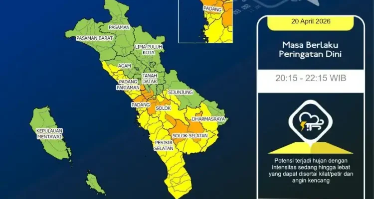 Sumbar Diselimuti Awan, Waspada Hujan Ringan di Pasaman Barat, Senin Ini Peristiwa|Minggu, 1 Maret 2026oleh Redaksi