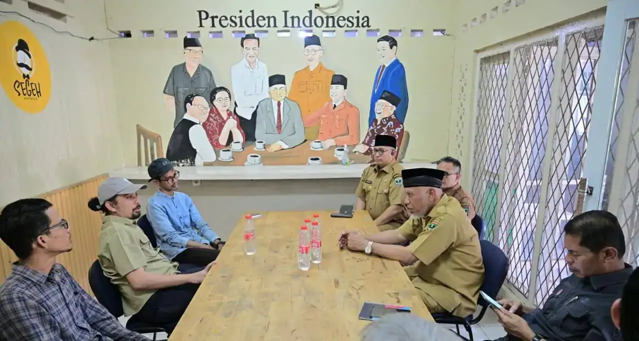 "Ini wajah-wajah presiden ya? Ini cukup lengkap ya. Ada Pak Syafruddin Prawiranegara, ada Pak Assaat," kata Mahyeldi, mengomentari mural tersebut.