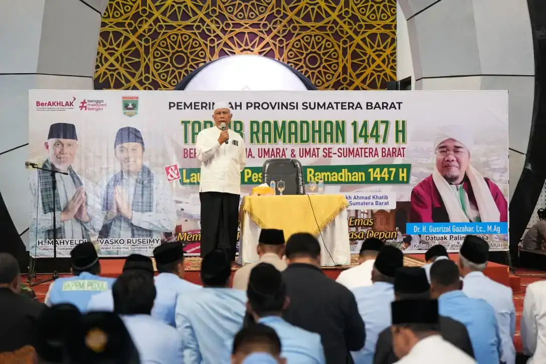 Peluncuran program ditandai dengan kegiatan Tarhib Ramadhan yang berlangsung di Masjid Raya Syekh Ahmad Khatib Al Minangkabawi, Minggu (15/2/2026). Gubernur Sumbar, Mahyeldi Ansharullah, menegaskan bahwa Ramadhan harus dimanfaatkan sebagai madrasah besar untuk membentuk akhlak, disiplin, kepedulian, dan kejujuran umat Islam.